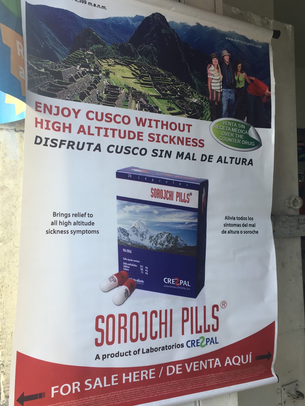Eso sí, previo paso por la farmacia para comprar todo un hit :las “sorochi pills” que según dice el anuncio parecen ser un antidoto infalible para el mal de altura, así que yo si eso por si acaso me dopo, sorochil al canto y a mascar hojas de coca como pura llama andina.