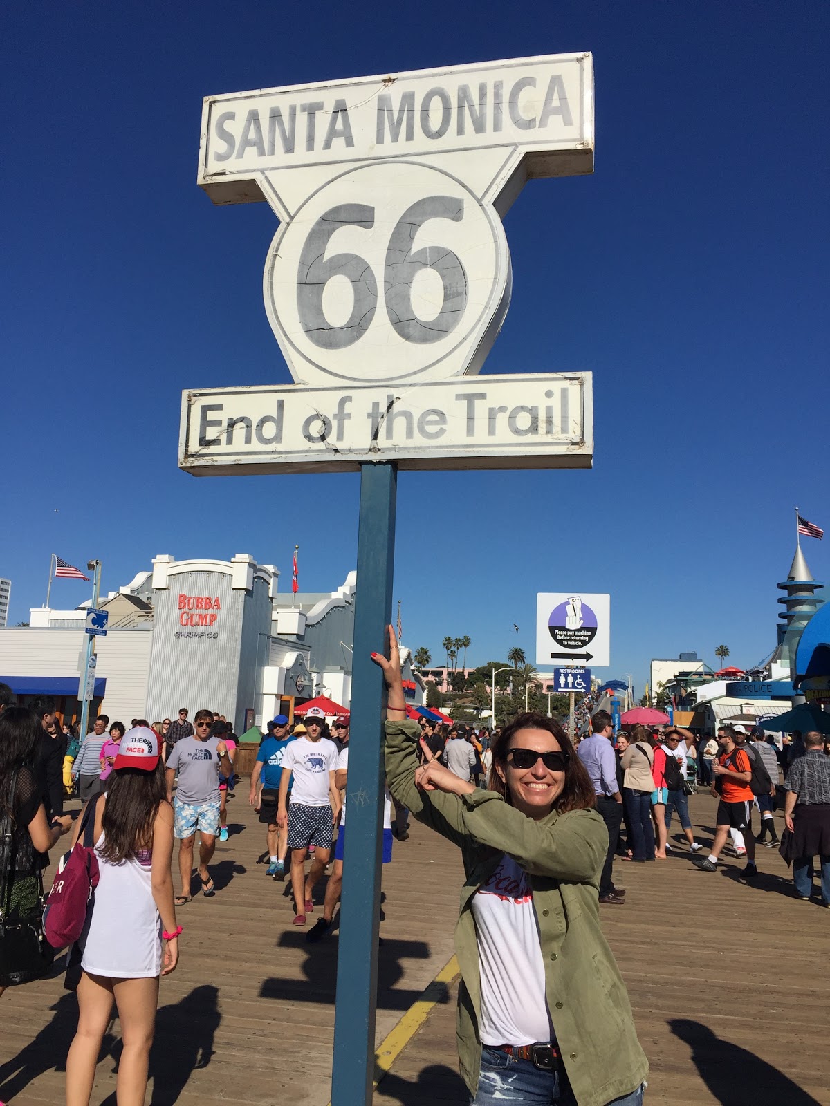 Allí termina la mítica ruta 66 que atraviesa todo el país y aparte de un cartel que así lo indica, hay un mini parque de atracciones y algunos puestos de comida.
