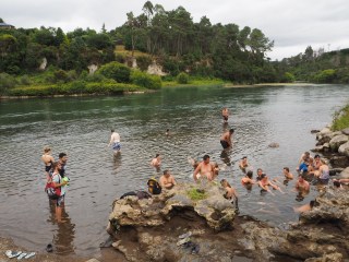 Bajamos siguiendo la corriente del río mientras hasta que llegamos a los hot springs, los baños termales calientes.