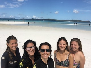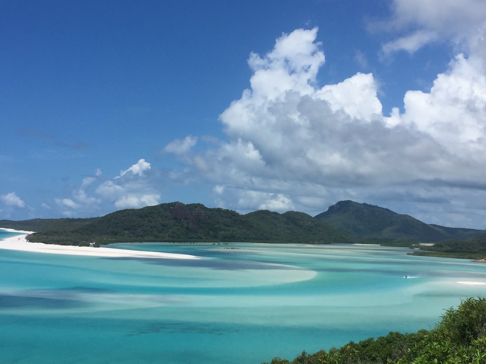 Las islas muy bonitas, hicimos snorkel ( aunque los corales están muy pelados y nada que ver con Cairns)y estuvimos unas horas en Whitehaven, nombrada como una de las 3 mejores playas del mundo y como muestra dejo una foto. La arena es más blanca que la del caribe, no quema ( porque es de sílice) el agua es de un azul increible, pero( sí hayun pero) el agua está como babas de caliente y hay que bañarse con burkini por el riesgo de medusas.Pero con burkini y todo la playa es espectacular