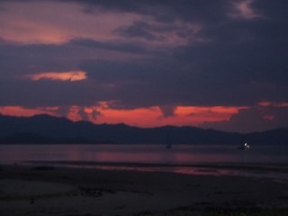 Ya una vez que se hizo de noche pusimos rumbo de vuelta al Nido. Nuestra estancia en Palawan concluyó con unas bebidas post cena en la playa. Denise y yo nos íbamos al día siguiente en el ferry de las 6 de la mañana, con lo que nos tocó irnos a la cama pronto como los Lunnies. Resultó que casi todos seguían el mismo itinerario en los días siguientes hacia Corón por lo que nos despedimos con un hasta luego y quedamos para vernos todos en el siguiente destino.
