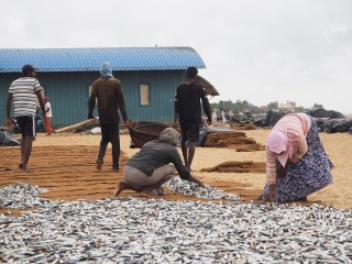 La verdad que no tiene mucho y es un poco “ Lloret de Mar” está lleno de hoteles, cafés y tiendas de souvenirs para guiris. Lo que más me gustó fue el mercado del pescado, en el que hay decenas de puestos en los que los pescadores secan el pescado al sol. Eso sí viendo eso, la salubridad del lugar, que el pescado está a plena solana, rodeado de basura y polución, entran muchas ganas de volverse vegetariana.