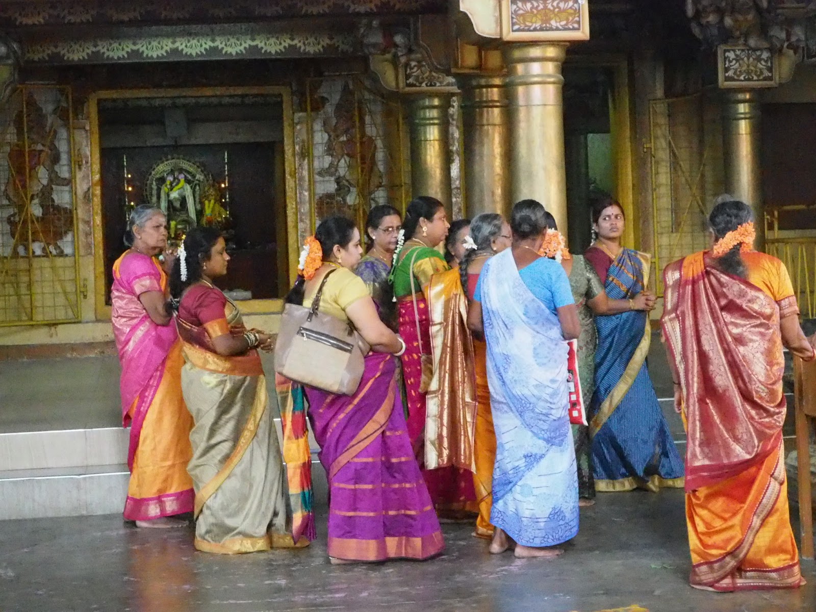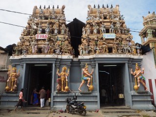 Por la mañana pronto me fui a ver el templo hinduista más famoso, Nallur Kandaswamy Kovil. En el camino paré en el de Miralliaman ( que está a un minuto) y llegué al templo de Nallur Kandaswamy un poco antes de las 10, justo a tiempo para la Puja( que vendría a ser como el servicio religioso), y que es bastante curioso de ver, así que allí que me senté en el suelo y me quedé un rato mirando.