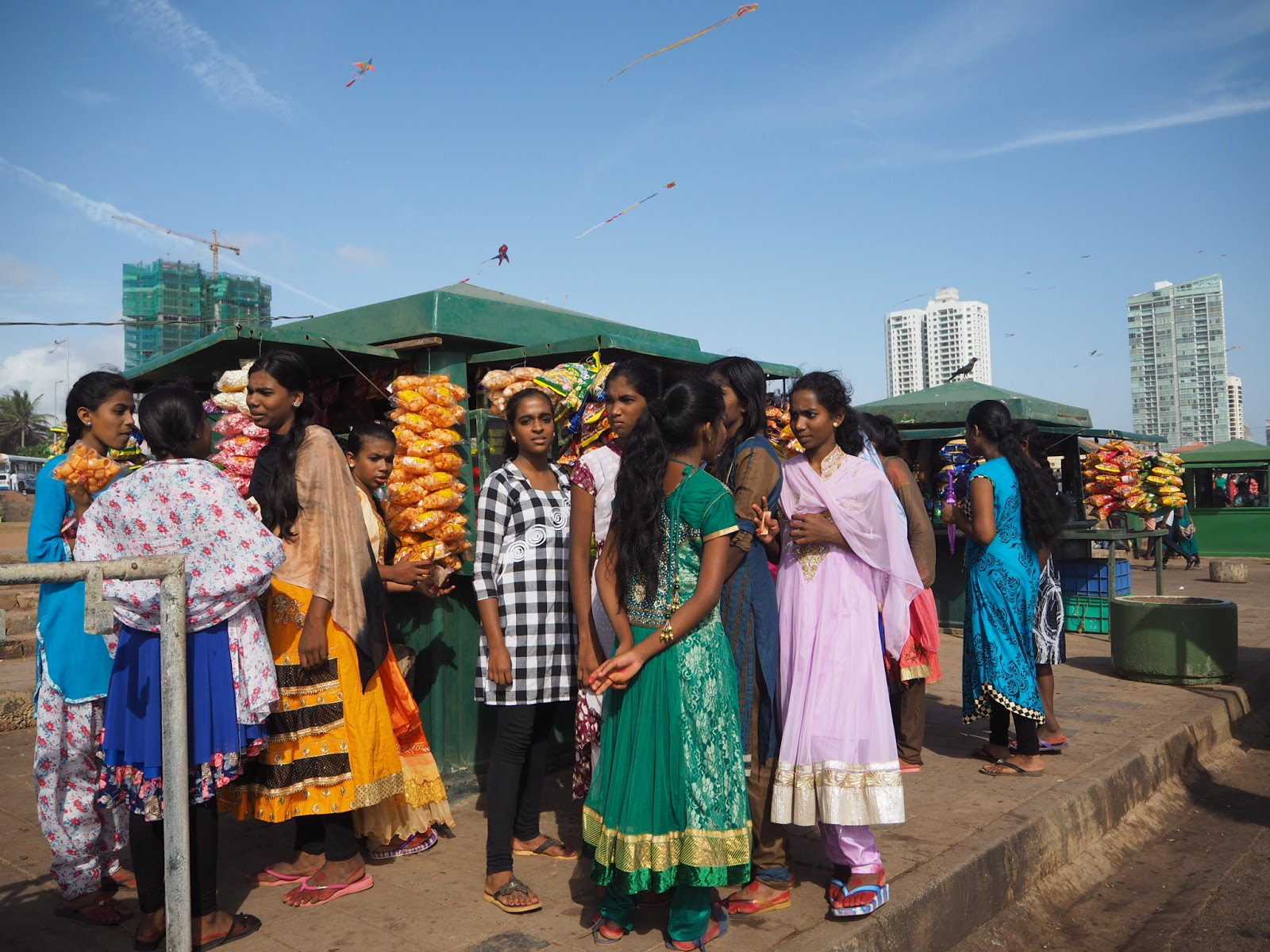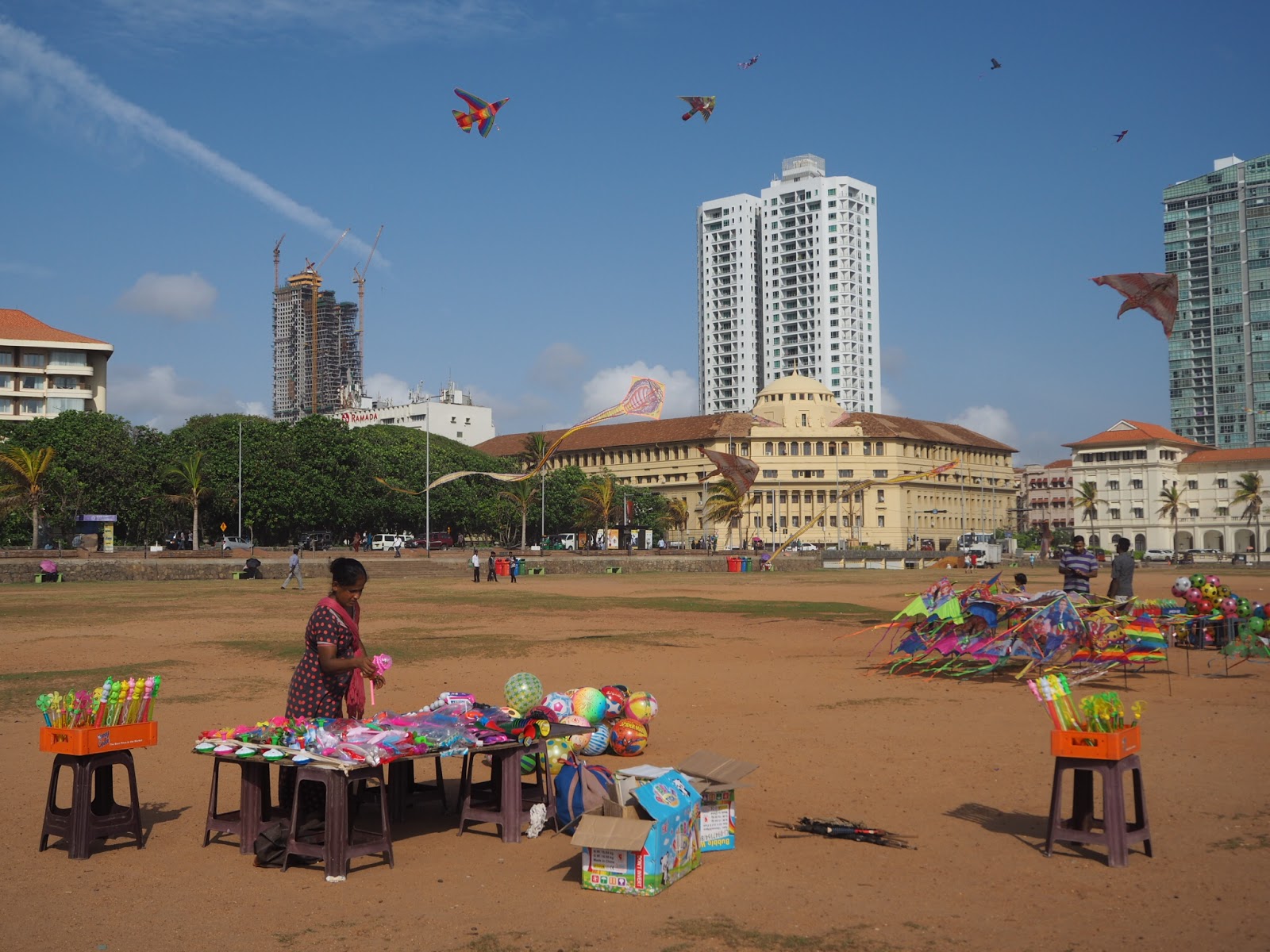 En mi camino hacia el hotel para coger la mochila, fue bordeando la costa hacia el sur y pasé por Galle Face Green, una franja junto a la costa que como era domingo, estaba llena de puestos de comida, helados, y cometas. Es interesante ver a las familias paseando o bañándose en el mar.