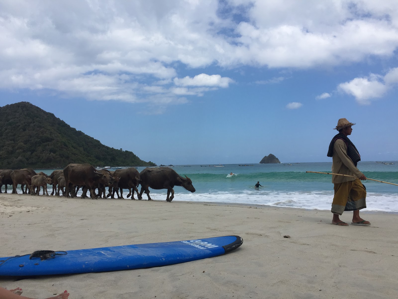 Con la moto me fui de paseo a La playa de Selong Blenak porque mi objetivo en Lombok era surfear y aparentemente ésa era buena para “ paquetillos” como yo.