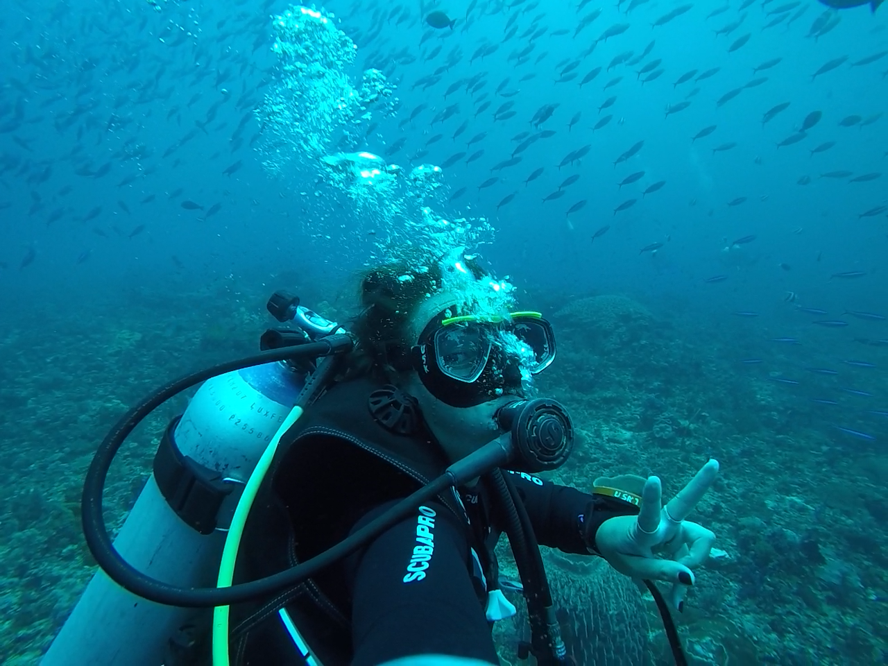 Dediqué 2 días a bucear, saliendo a las 7:30 y regresando sobre las 18. El primer día fuimos a Siaba Besar, Batu Bolong,y Mawan que en teoría no tenían tanta corriente y eran más seguros para mi que aún soy bastante paquetillo y solo había buceado en Filipinas, que es casi como una piscina.Cristal Rock, Castle Rock y Cauldron el segundo, más al norte y famosos por sus fuertes corrientes, aunque para mi suerte solo las experimenté en el segundo aunque hasta tal punto que tuve que usar el palo selfie de la go- pro para ir reptando por el suelo.